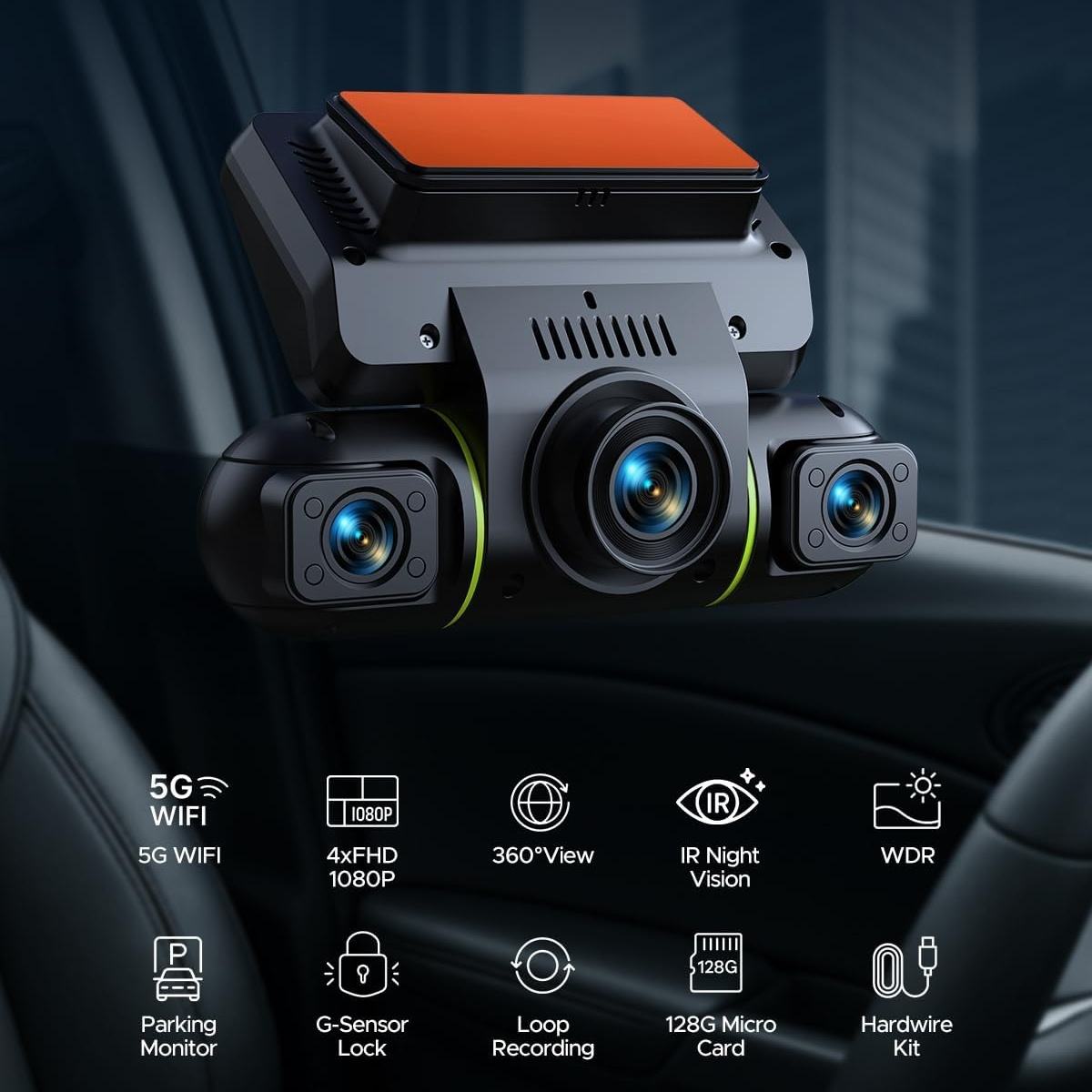 Dash Camera 1080P 3 Channels Front Rear and Inner 5GWIFI Car Video Driving Recorder Dvr Black Box Night Vision Motion Detection