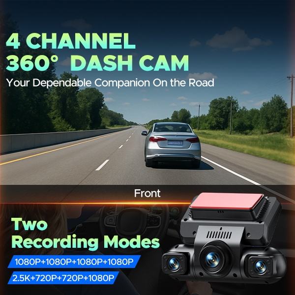 4Lens 1080P FHD 3in1 Car Dash Camera IPS Screen G-sensor Parking Car Black Box with Night Vision & Real 4 View Layout in Screen