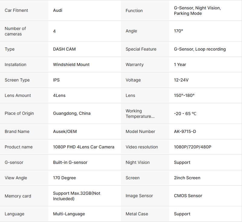 成为第一个“4Lens 1080P FHD 3in1 Car Dash Camera IPS Screen G-sensor Parking Car Black Box with Night Vision & Real 4 View Layout in Screen” 的评价者