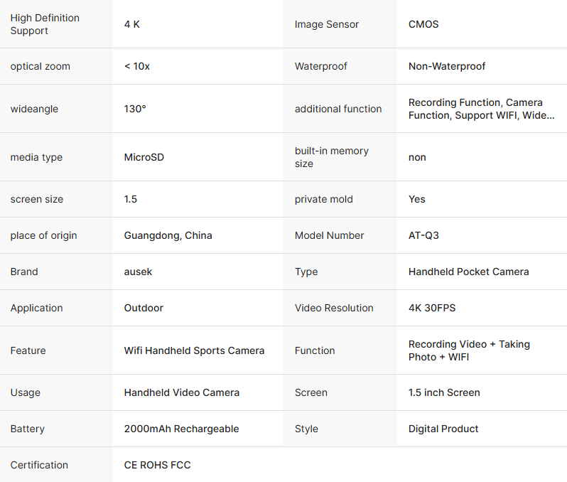 成为第一个“Dual Lens Action Camera 4K Handheld Pocket Digital Camcorder” 的评价者